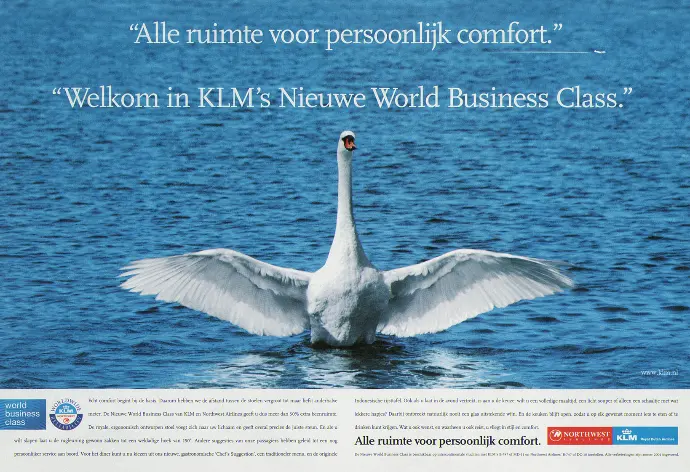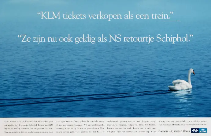 Desde 1992, hemos trabajado estrechamente con KLM para dar vida a su marca de una manera única. Desde el icónico Cisne de KLM hasta campañas publicitarias creativas y comerciales internacionales, en los últimos 30 años hemos desarrollado una amplia gama de anuncios para esta reconocida marca mundial. Hoy en día, continuamos apoyando a KLM con campañas inspiradoras, incluido su propio magazine especialmente para agentes de viajes. Ya sea con grandes campañas internacionales o comunicaciones dirigidas, seguimos siendo un socio confiable para KLM.