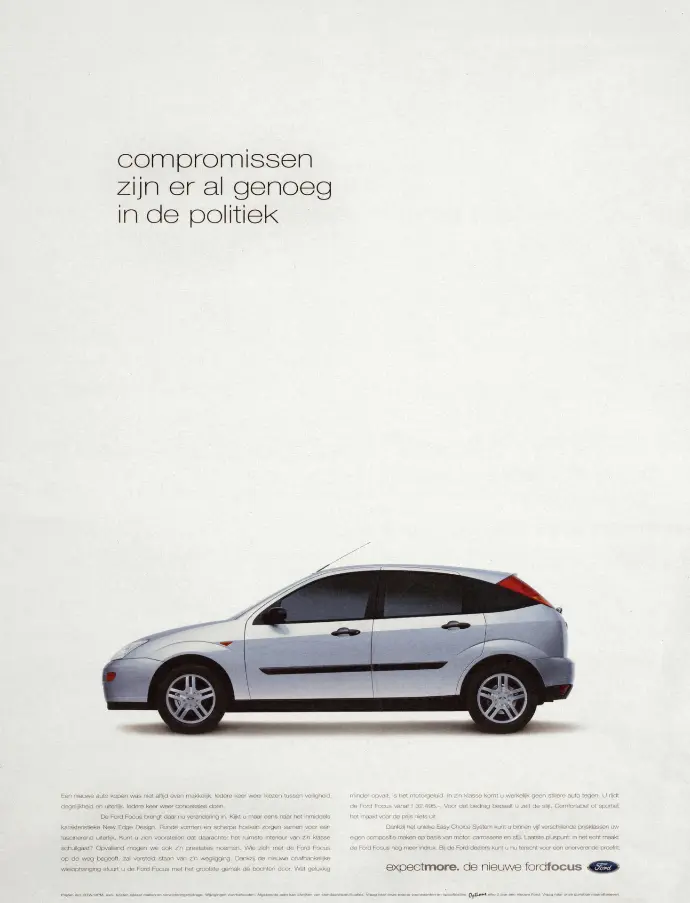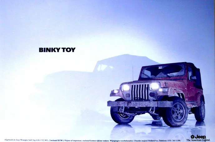 A lo largo de los años, hemos trabajado con varias marcas de automóviles. Nos encargamos de la introducción del distintivo Ford Focus, así como del lanzamiento de un nuevo Jaguar - el primer Jaguar disponible para leasing, lo que lo hizo de repente mucho más asequible. En el titular, hicimos referencia al icónico E-Type. Además, trabajamos en una doble página en Playboy para el Jeep Wrangler. El titular original era A dirty mind is a joy forever, pero desafortunadamente fue reemplazado por la versión más segura: Binky Toy, que fue una traducción creativa de Dinky Toy.